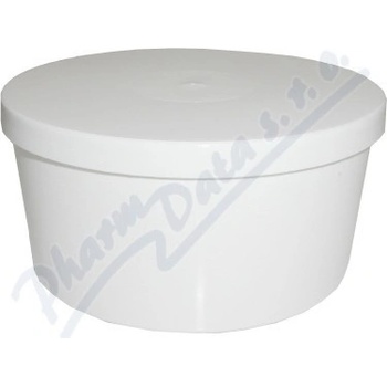 Plastový bílý kelímek s víčkem. Pomocný materiál určený pro lékárny - na masti, soli, pudry, prášky apod.